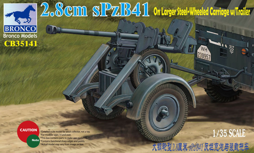 Bronco Models 1:35 CB35141 2.8cm sPzb41 On Larger Steel-Wheeled carriage w/Traile