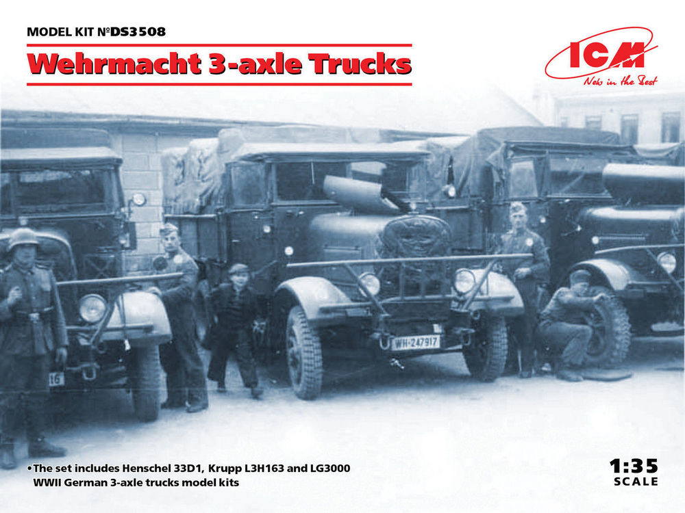 ICM 1:35 DS3508 Wehrmacht 3-axle Trucks (Henschel 33D1, Krupp L3H163, LG3000)
