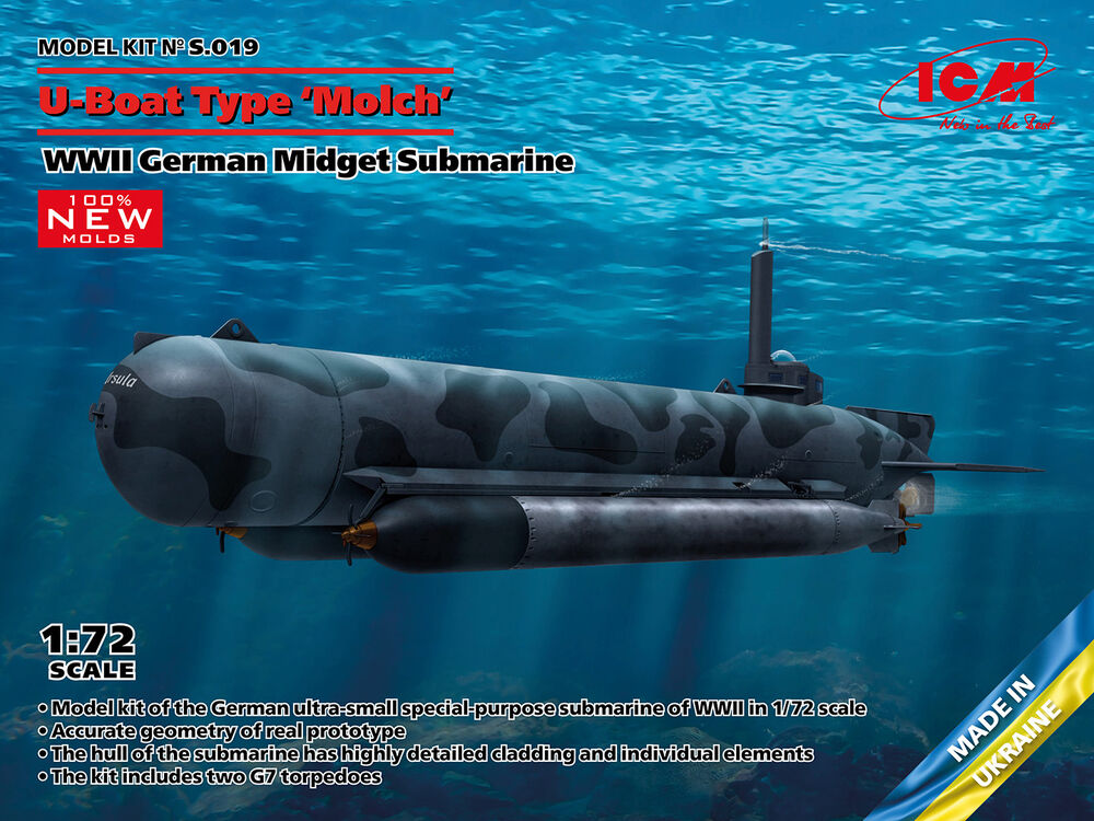 ICM 1:72 S.019 U-Boat Type Molch, WWII German Midget Submarine (100% new molds)