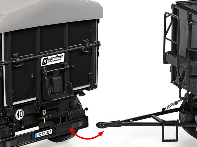 Das topaktuelle Erscheinungsbild des Kröger HKD 302 bringt den Purismus im Landmaschinenbau auf den Punkt – der Transportanhänger erhält ein individuelles, serienkontrastierendes Design. Dabei bleiben die Funktionen allesamt unangetastet. Die WIKING-Konstrukteure haben sich mit aller Liebe zur Präzision und Funktionsfähigkeit der Bauteile dem HKD 302 gewidmet. Ihm gelingen die vielseitigsten Kippbewegungen, ganz gleich ob rechts, links und heckseitig – in jeder Position macht der Kipper HKD 302 eine Top-Figur. Der vollfunktionale Dreiseitenkipper wertet einmal mehr das 1:32-Programm auf, zumal WIKING diesen großvolumigen Anhänger zu einem attraktiven Präzisionsmodell gemacht hat. Das Vorbild verkörpert einen Standard, der der Großlandwirtschaft entgegenkommt. Sein Leergewicht liegt bei maximal 4,6 Tonnen, die Nutzlast bei 14 Tonnen. Damit erreicht der Kröger HKD 302 ein Ladevolumen von 22,8 m³. Die Ladefläche nutzt mit einer Länge von 5,3 Meter und einer Breite von 2,55 Metern die Möglichkeiten des Straßenverkehrs vollends aus. Zweckmäßig, alltagstauglich und vorbildgerecht, so hat sich der 18 Tonnen Gliederzug in der Landwirtschaft als das wirtschaftlichste und flexibelste Transportgespann etabliert.
