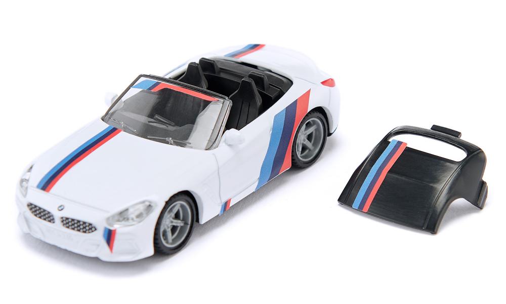 Dynamisches Cabrio in wandelbarem Outfit - Offen, flach und auf Dynamic getrimmt – vor allem in der Variante BMW Z4 M40i. Der 3-Liter-Sechzylinder-Motor mobilisiert bis zu 340 PS. siku liefert das dynamische Cabrio in Weiß aus. Mit dem serienmäßigen Design- und Tuningkit lässt sich der BMW Z4 individuell im M-Design bekleben. Ein kompletter Satz wechselbarer Räder ist mit schwarzen Felgen ausgestattet.Neuheit 08/2021