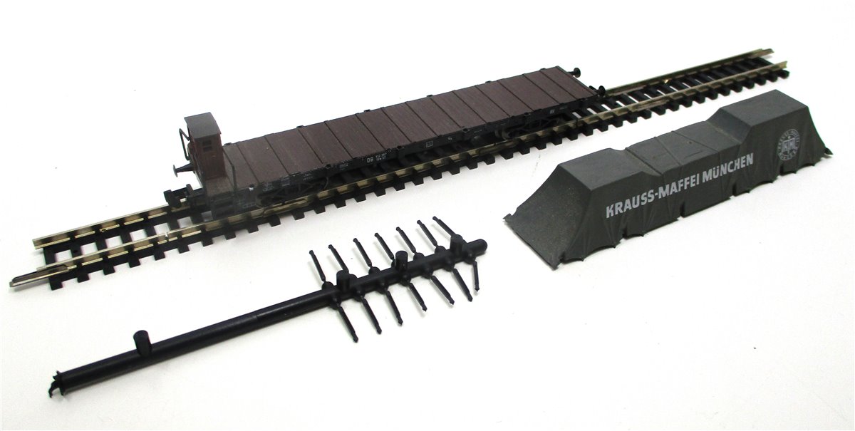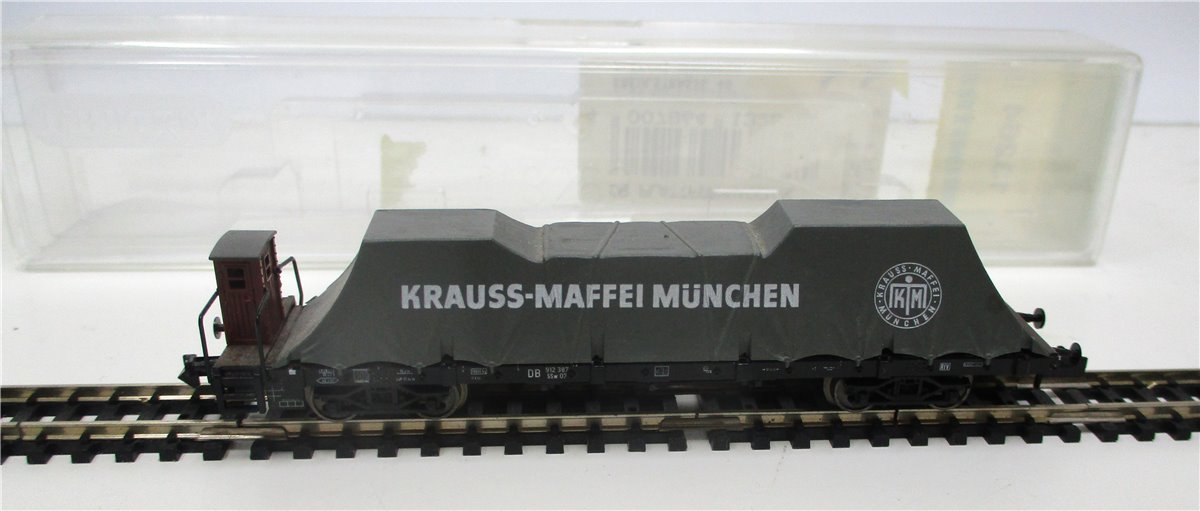Spur N Minitrix 13264 Flachwagen mit Plane Krauss Maffei SSw 07 (5968K)