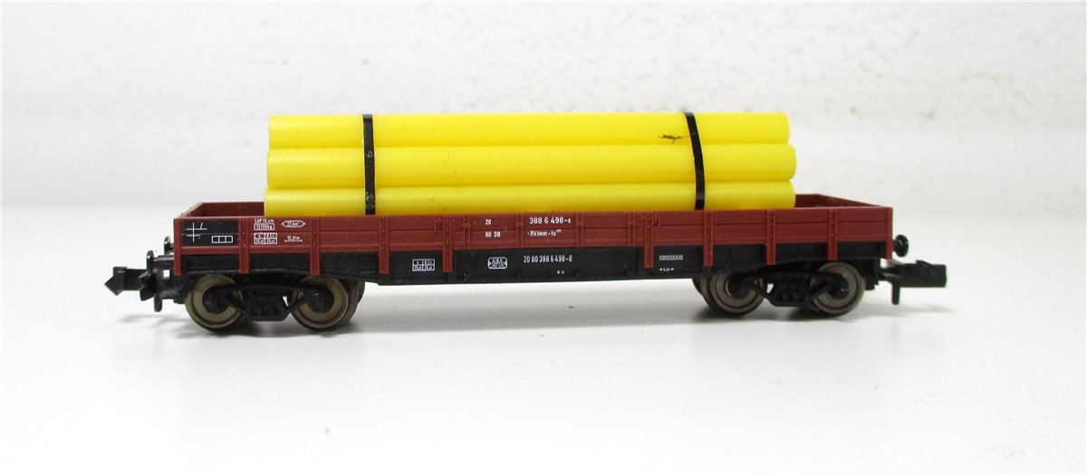 Fleischmann N 81 8281 Niederbordwagen mit Gasrohren 388 6 498-8 DB OVP (6427G)