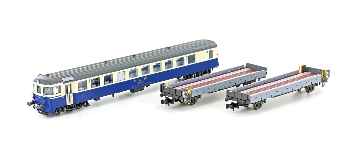 Lemke N LC96009 3er Autoverladezug, Steuerwg. BDt+2x Auffahrwg., BLS, Ep.V - NEU