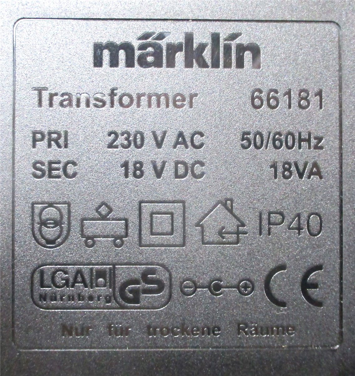 Spur H0 / N Märklin 66181 Leistungstrafo für Digitalzentrale 18V DC 18 VA