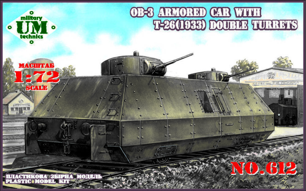 Unimodels 1:72 UMT612 OB-3 armored railway car with two T-26